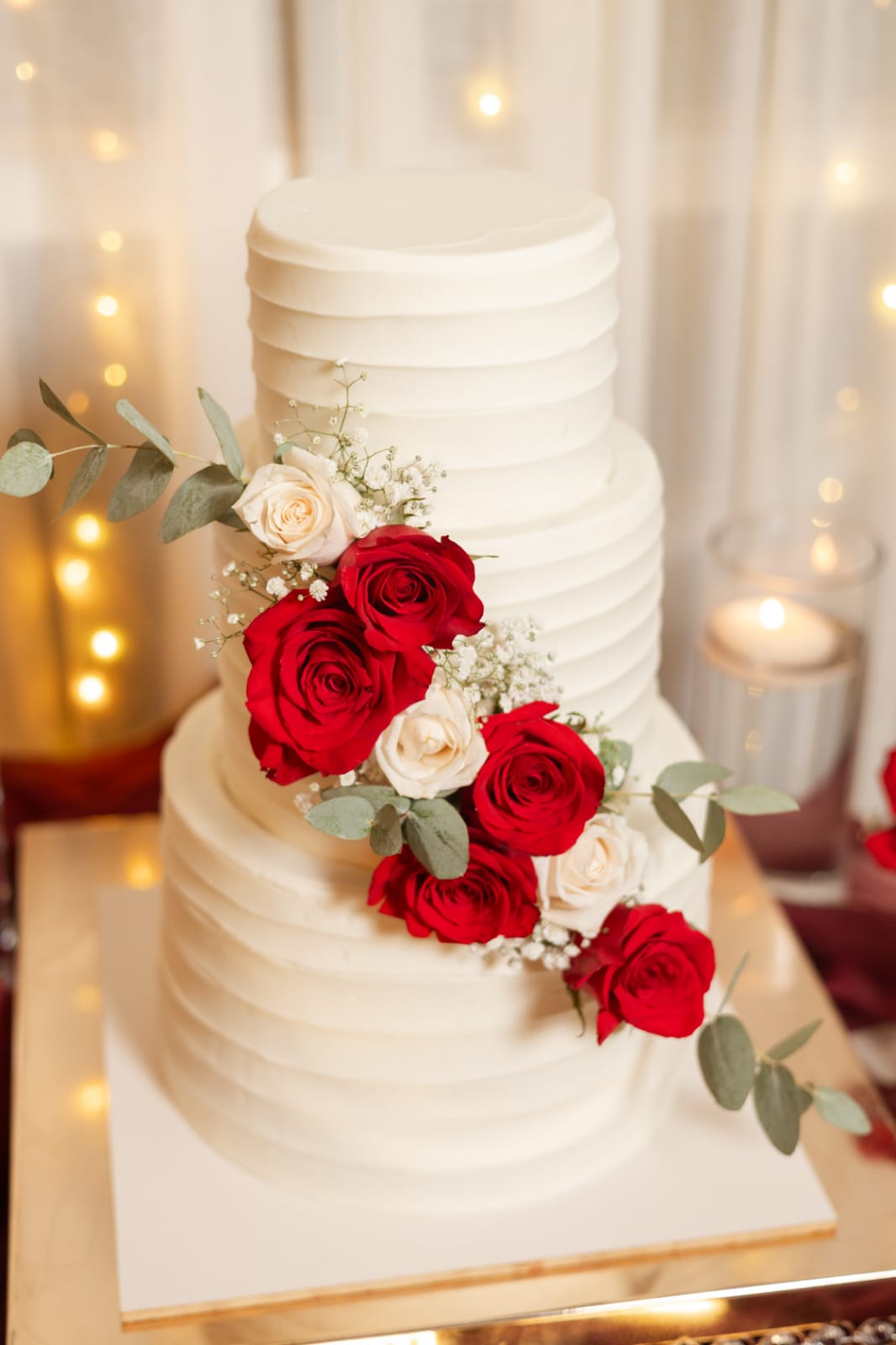 Backdrop para mesa de novios, follaje y velas para mesa de pastel y cofre.