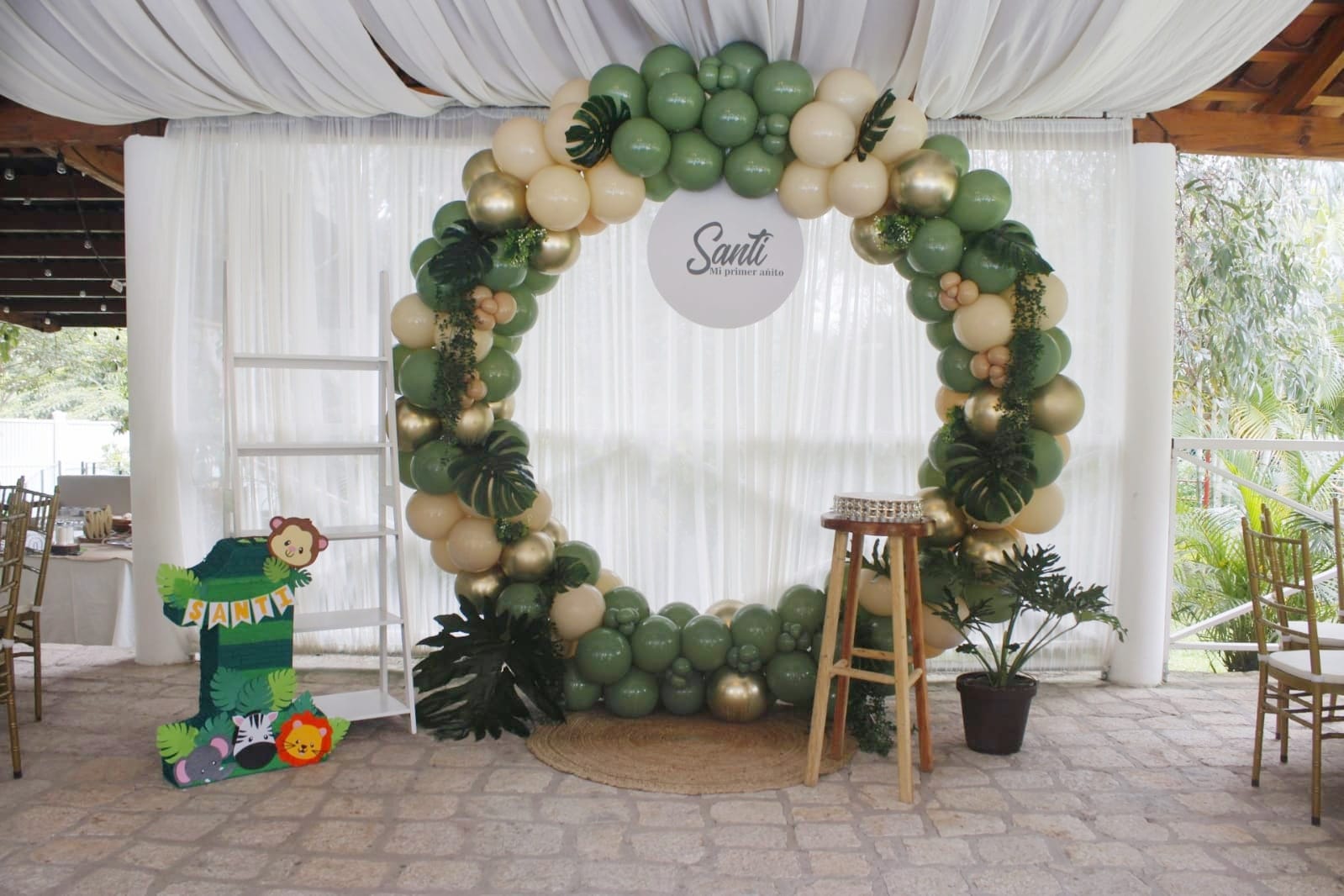 Backdrop temático con arco de globos, telares y/o guirnalda floral artificial